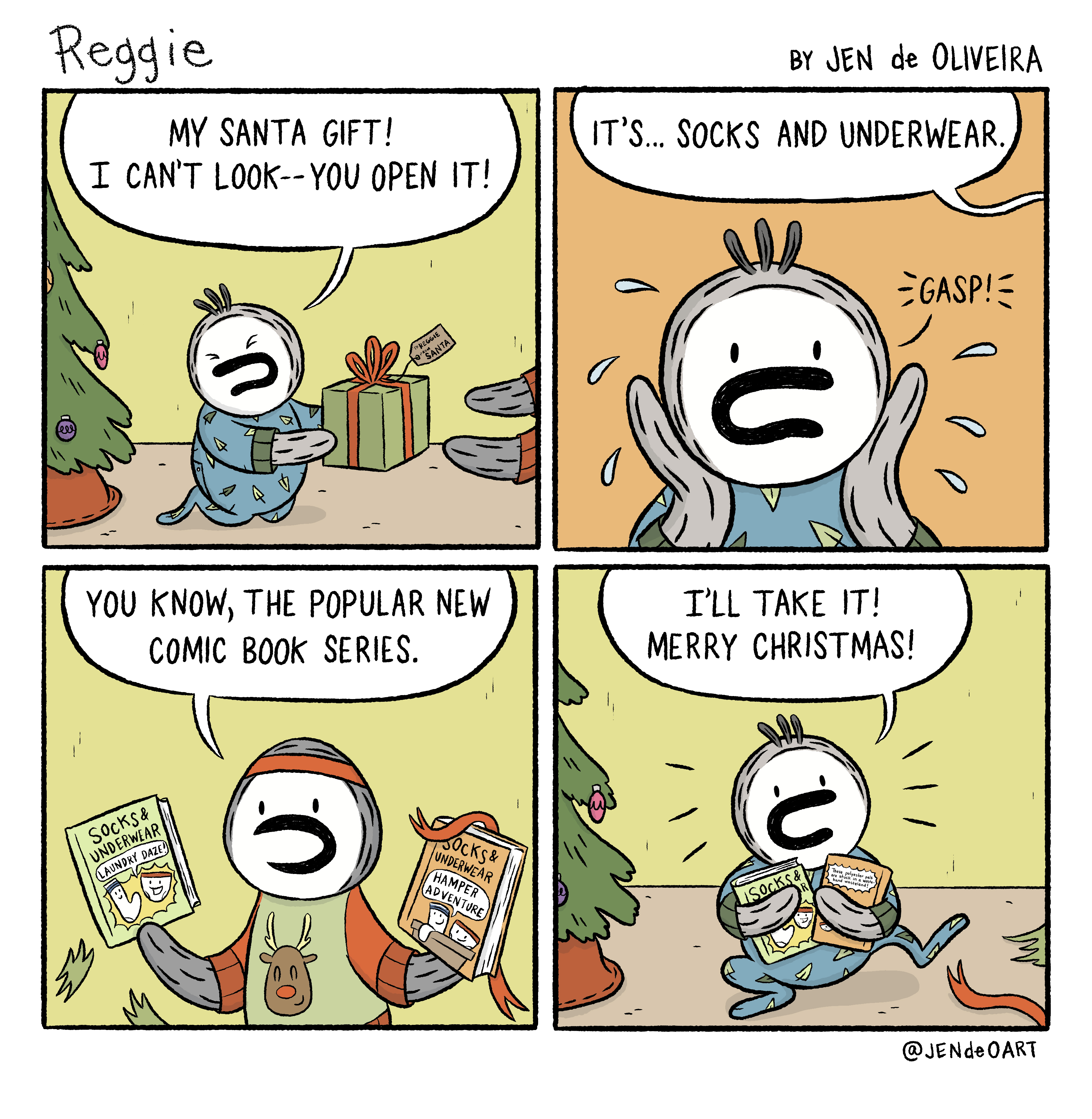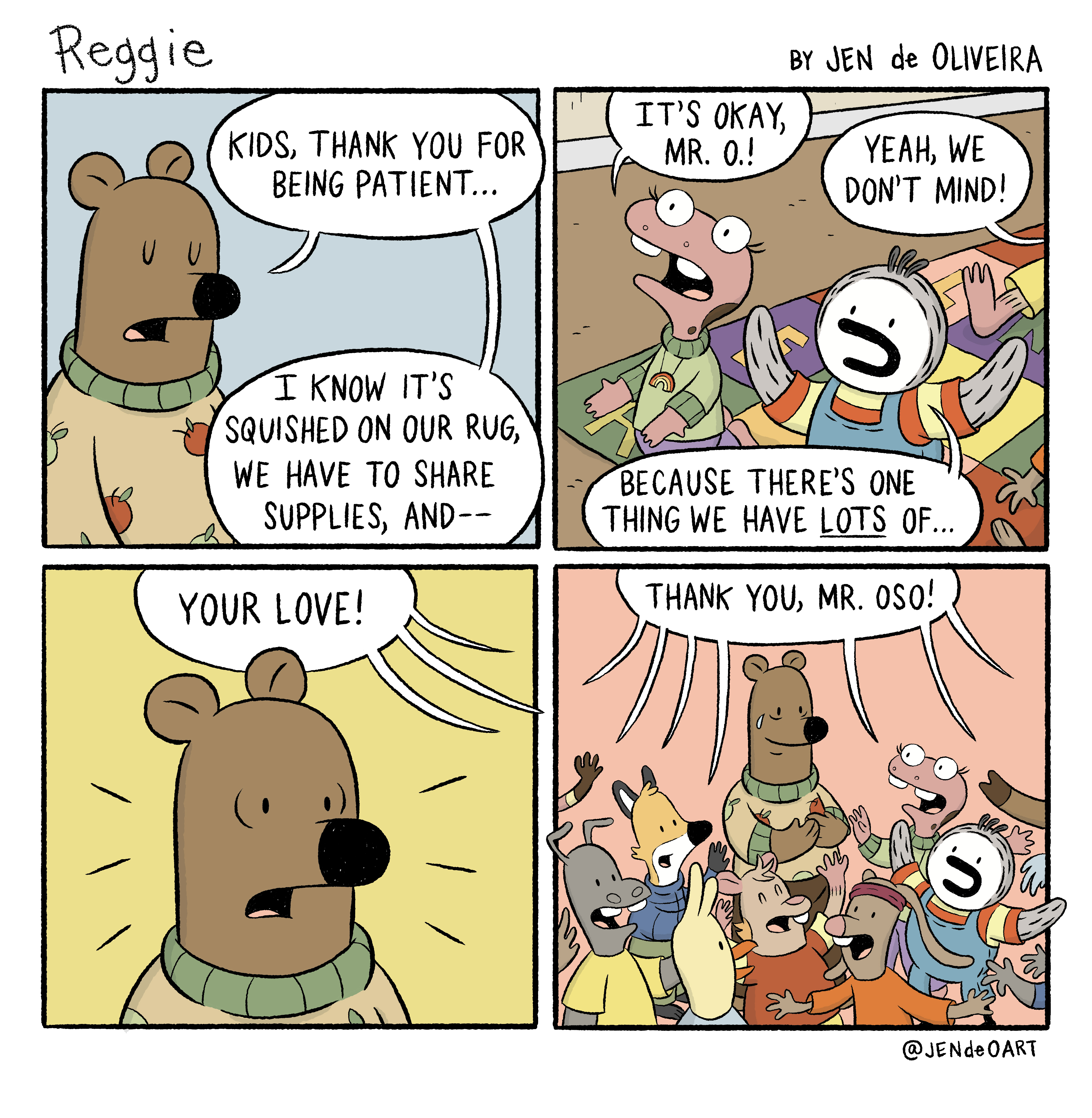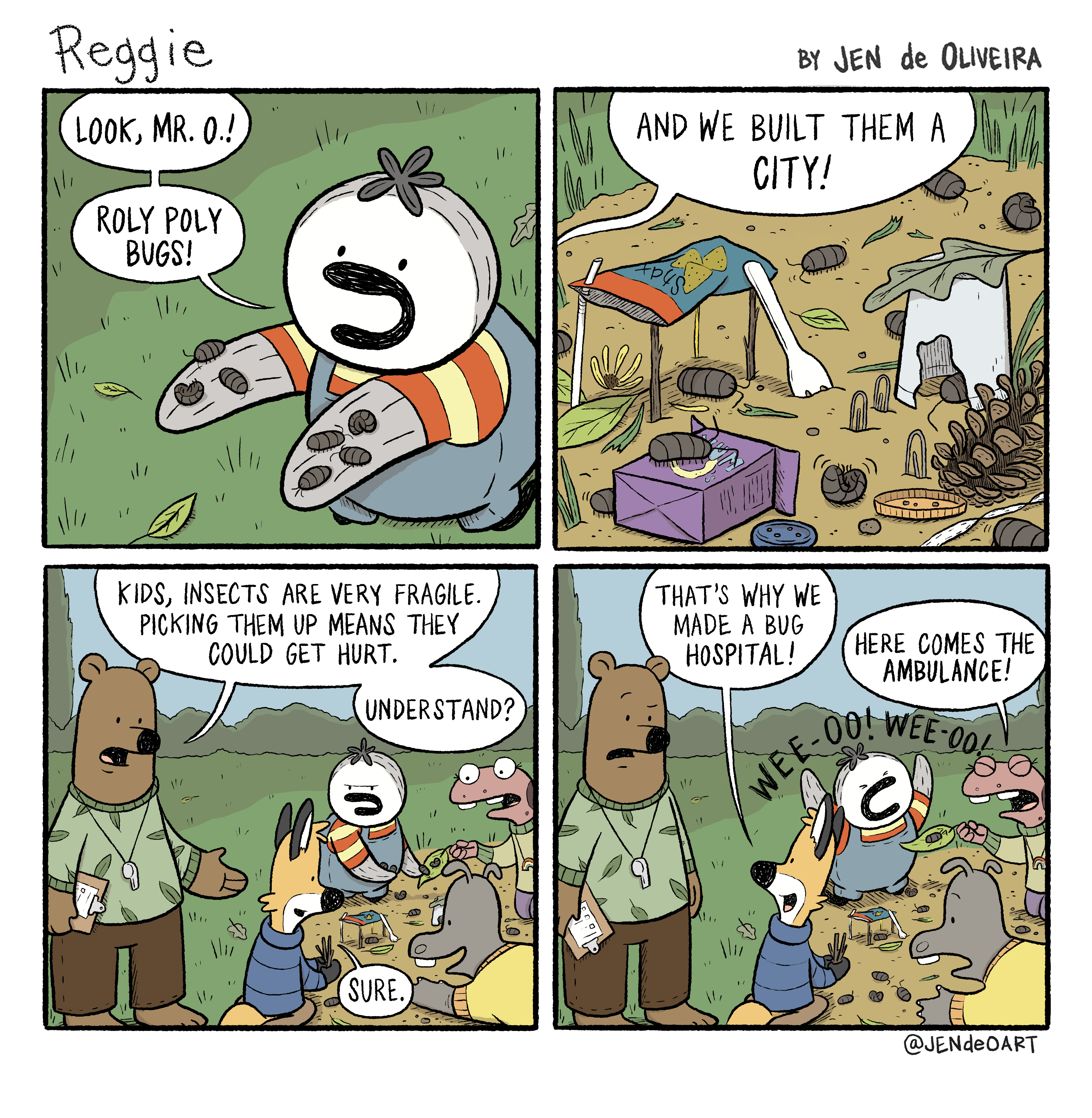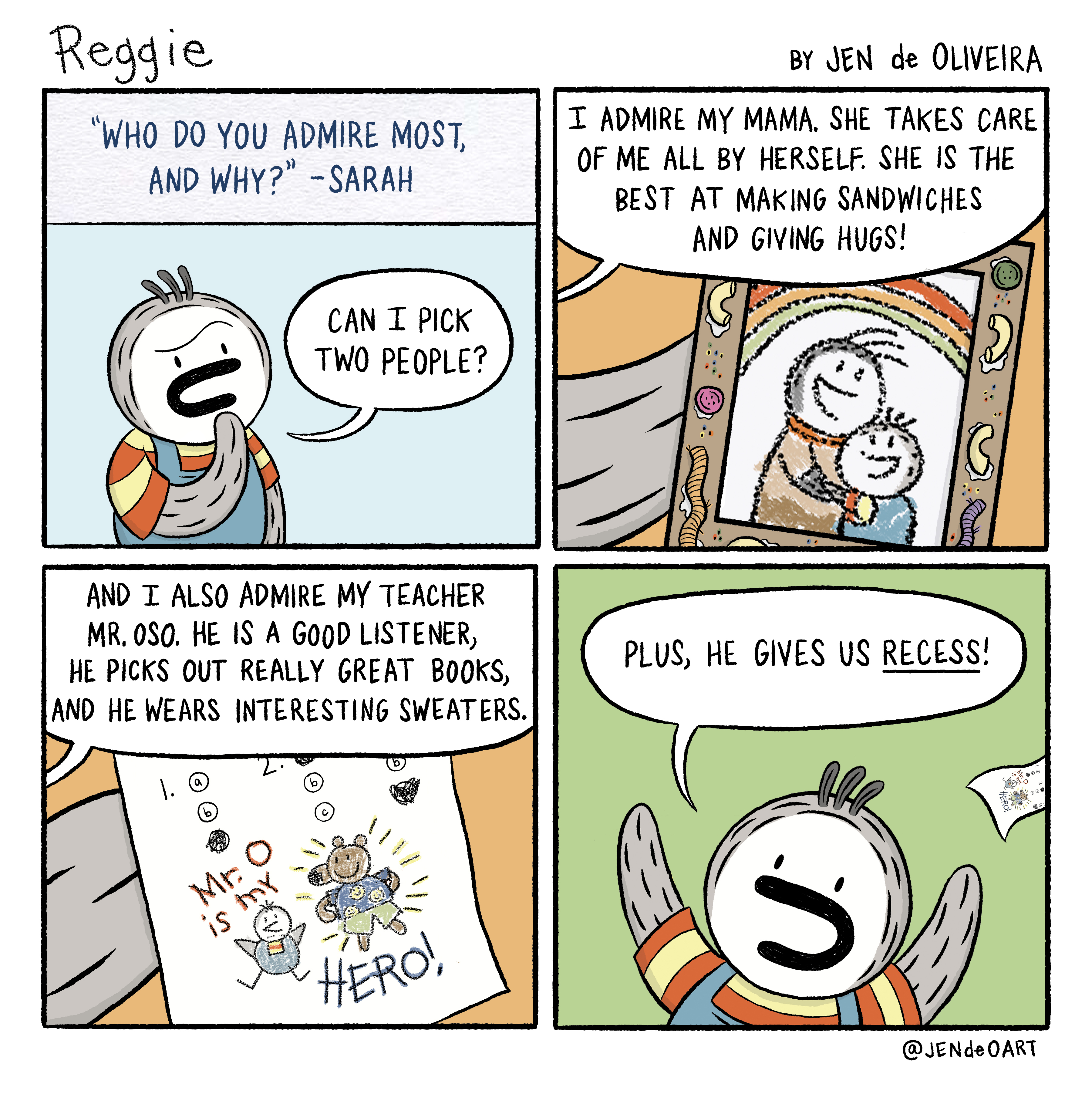 Cofounded in 2020 by Mika Song and Jen de Oliveira, Sunday Haha provided kids and families free comic strips made by a diverse group of kidlit creators. You can read the archive of weekly issues, some of which feature Reggie and other characters who went on to star in their own graphic novels.