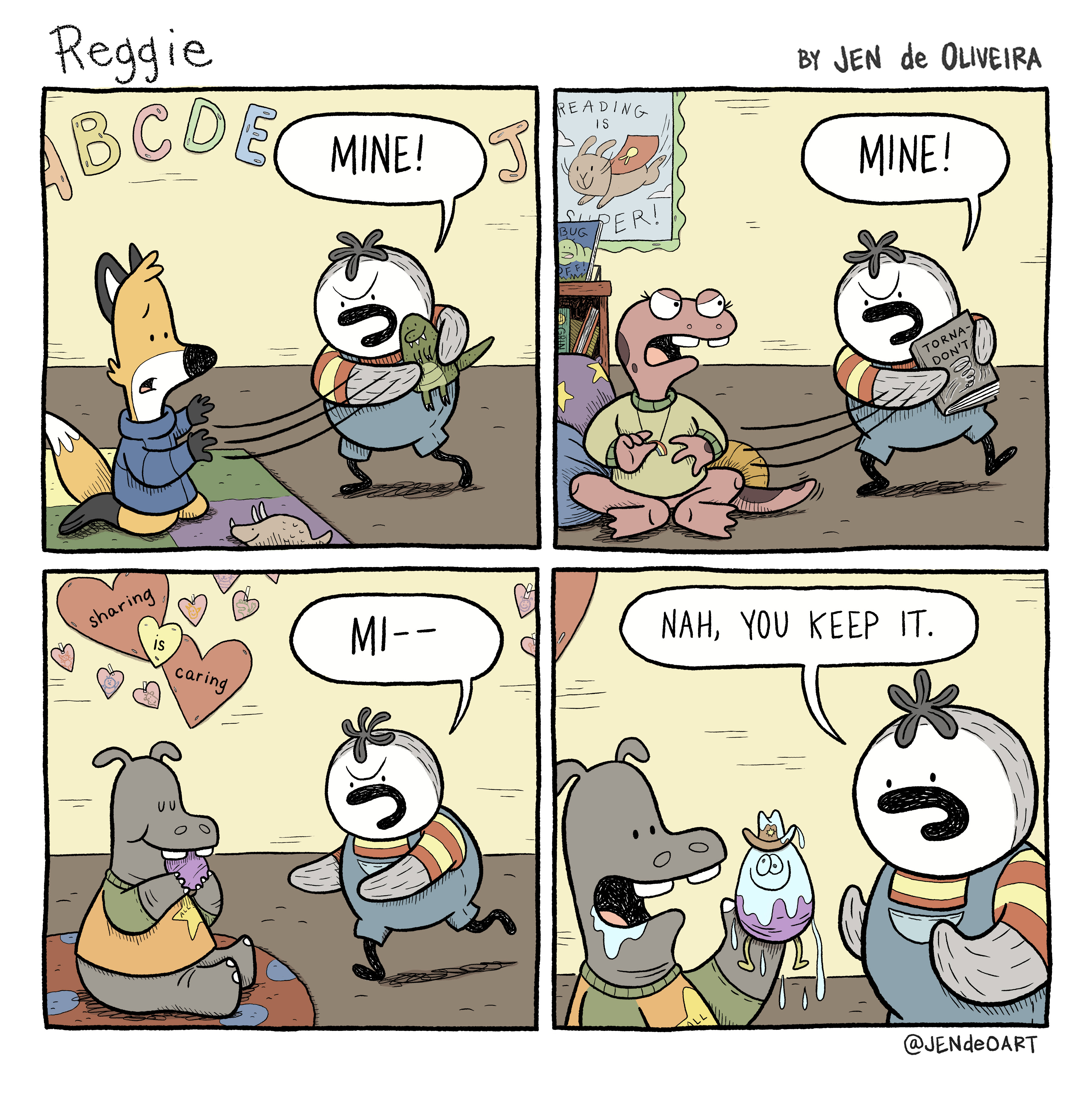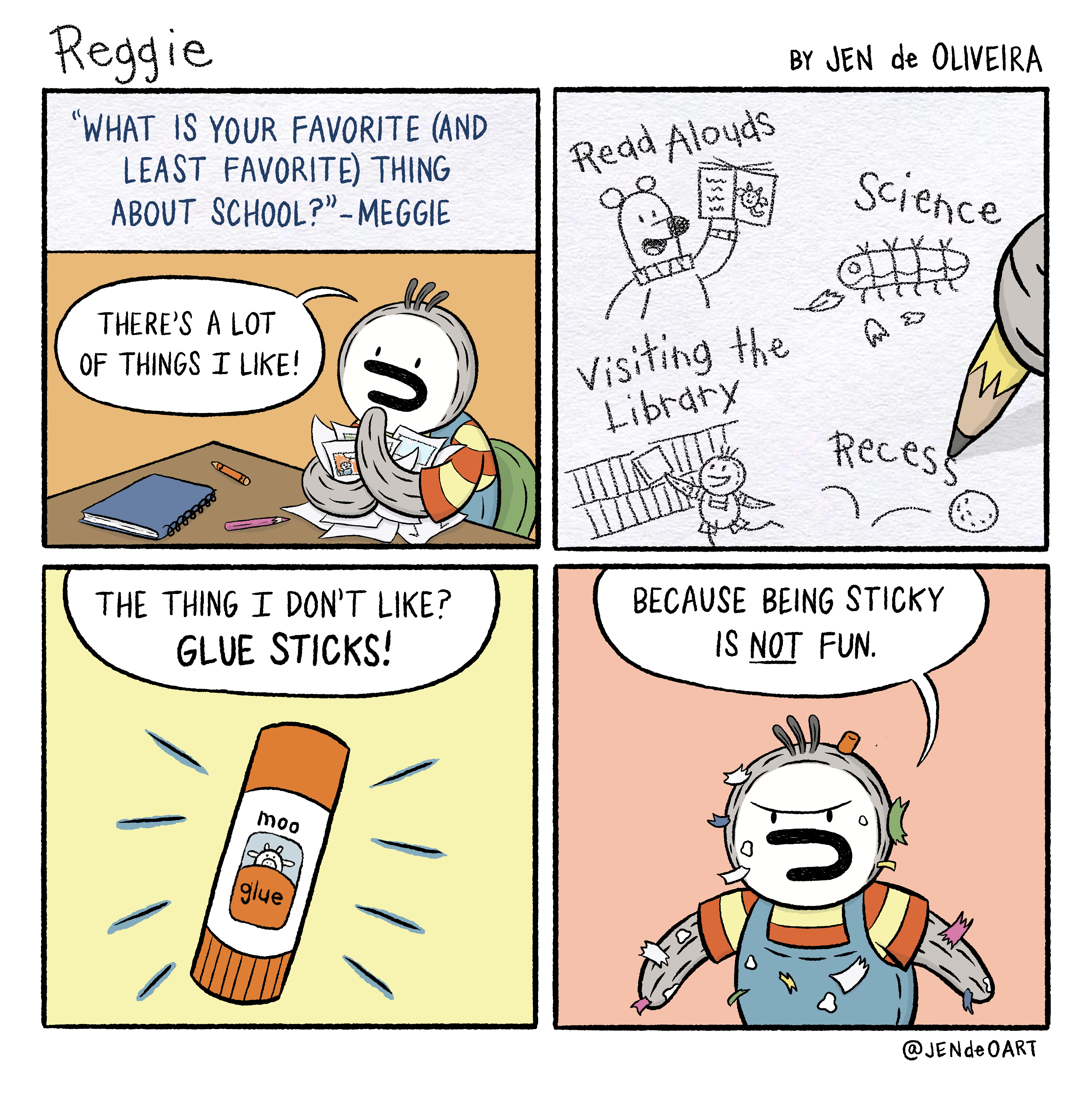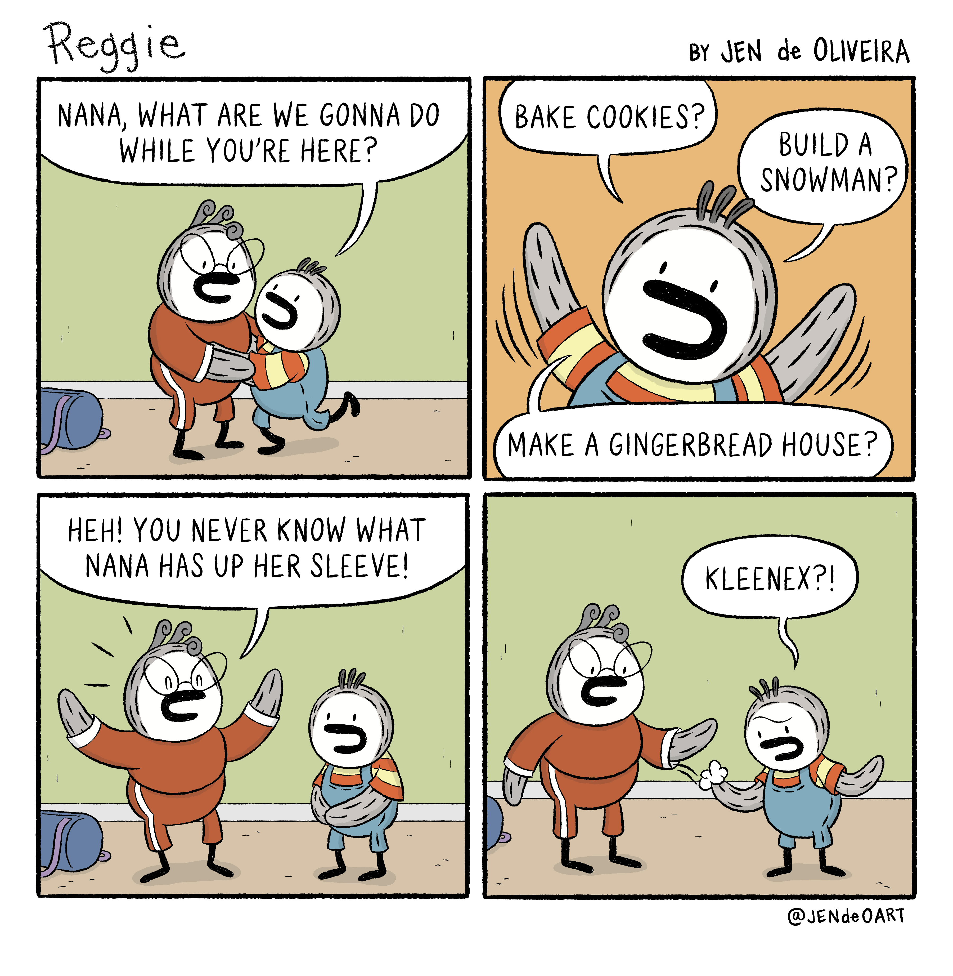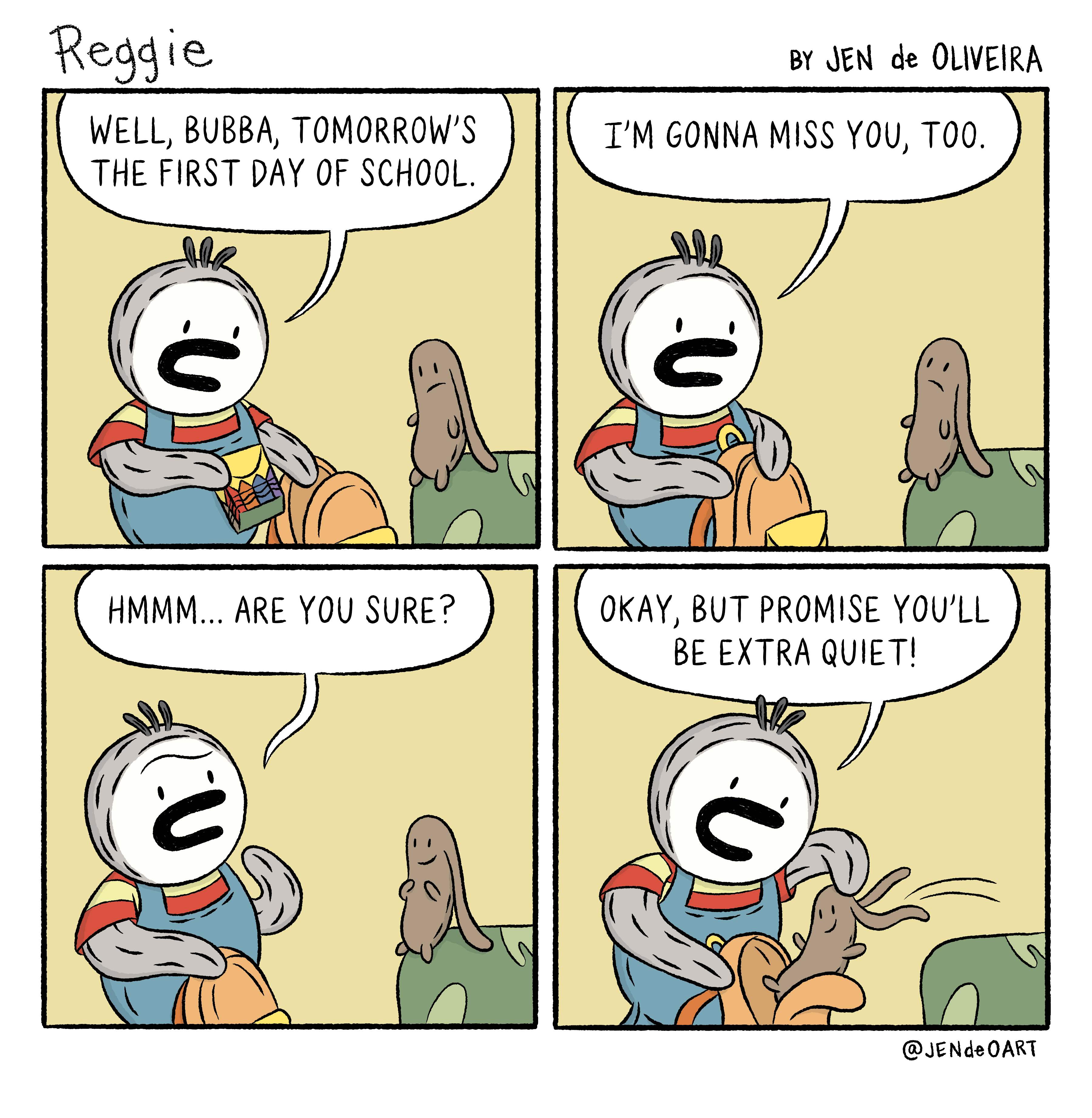Cofounded in 2020 by Mika Song and Jen de Oliveira, Sunday Haha provided kids and families free comic strips made by a diverse group of kidlit creators. You can read the archive of weekly issues, some of which feature Reggie and other characters who went on to star in their own graphic novels.