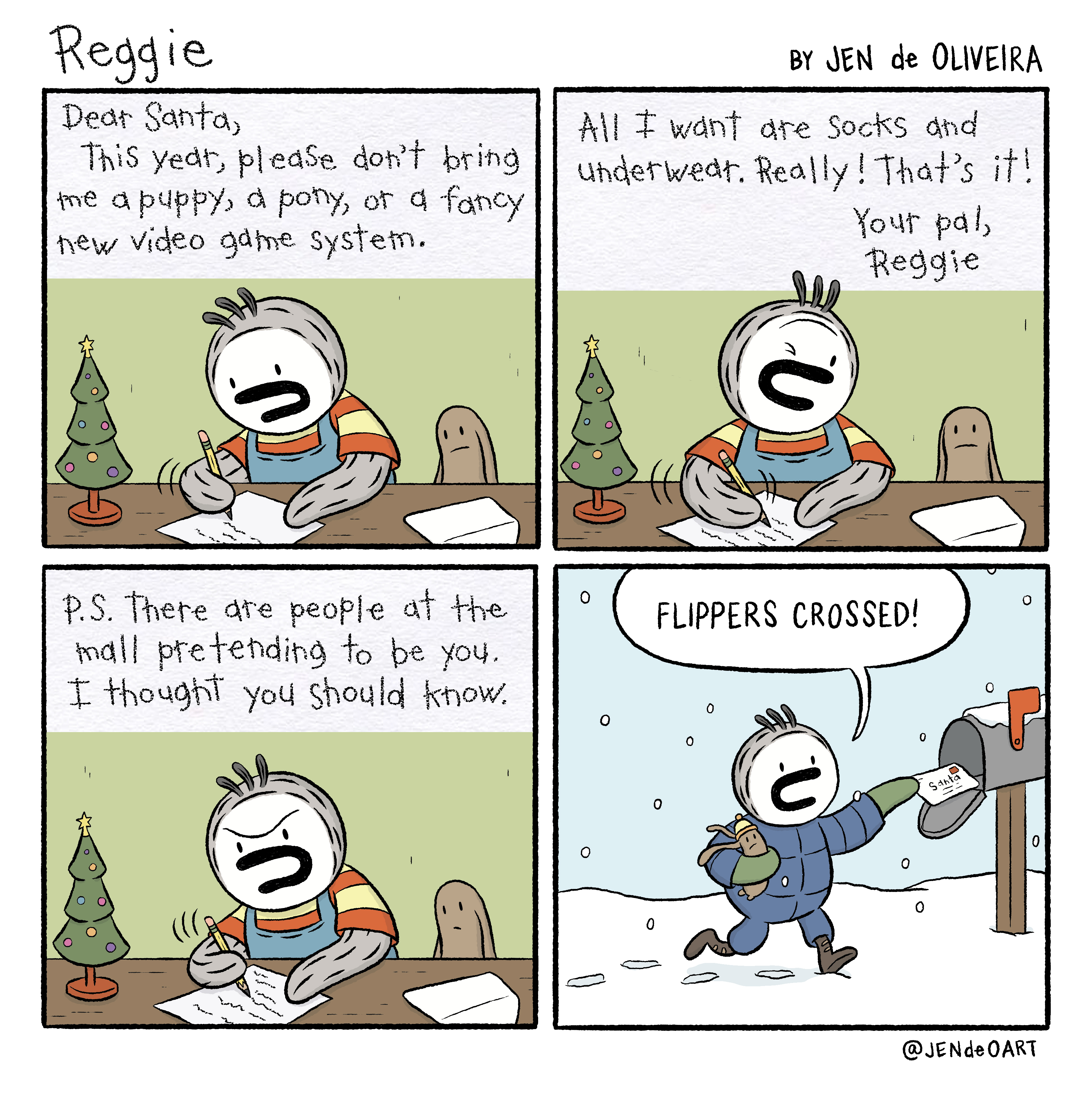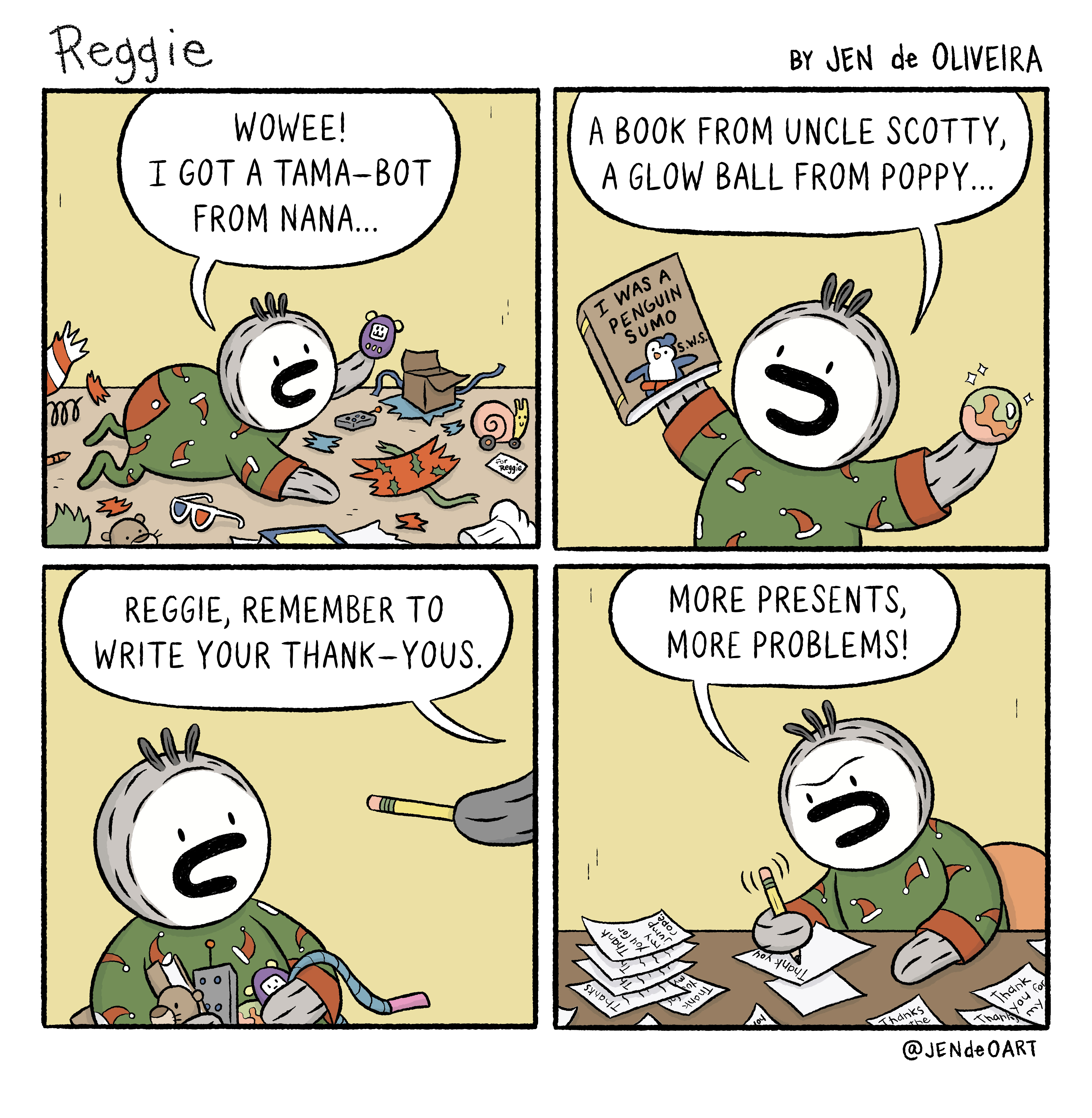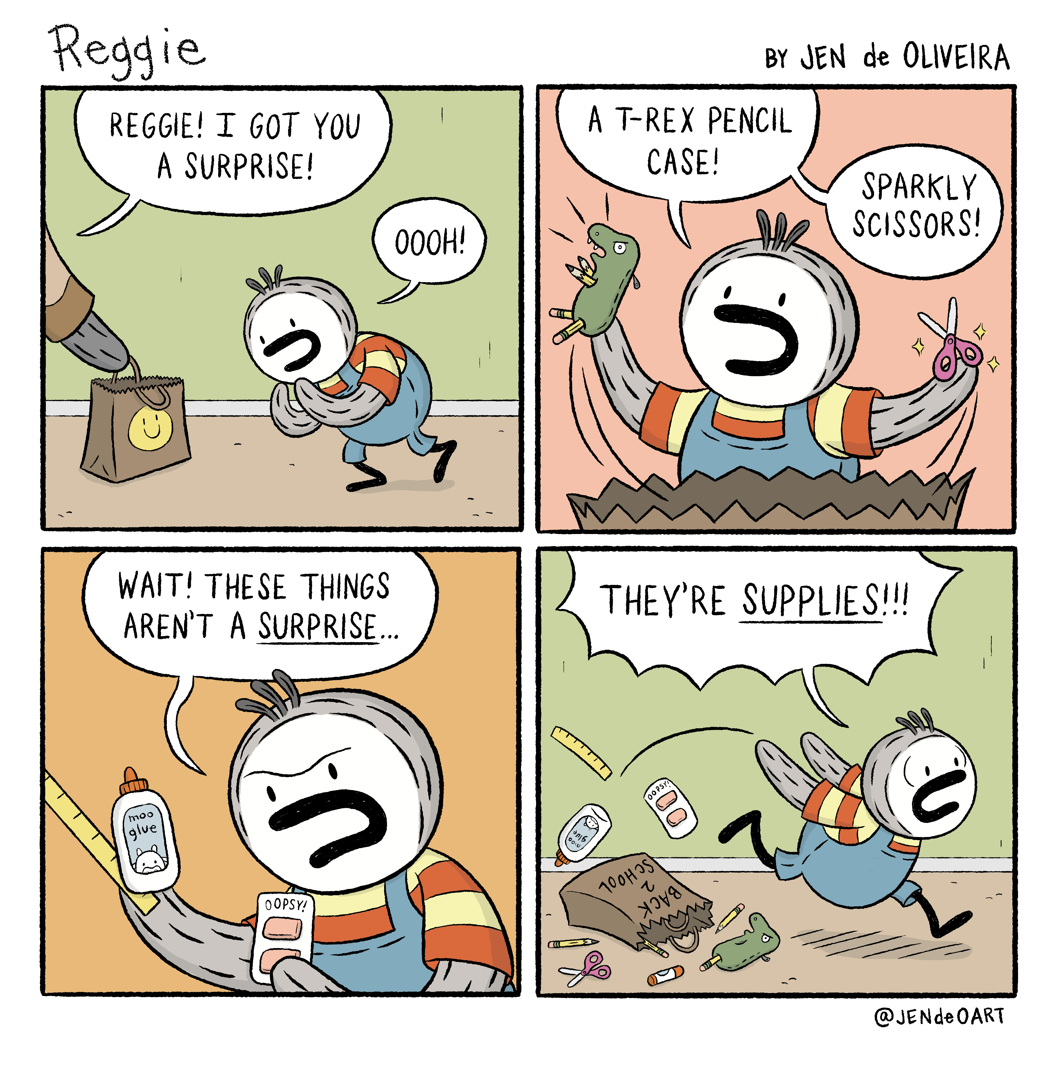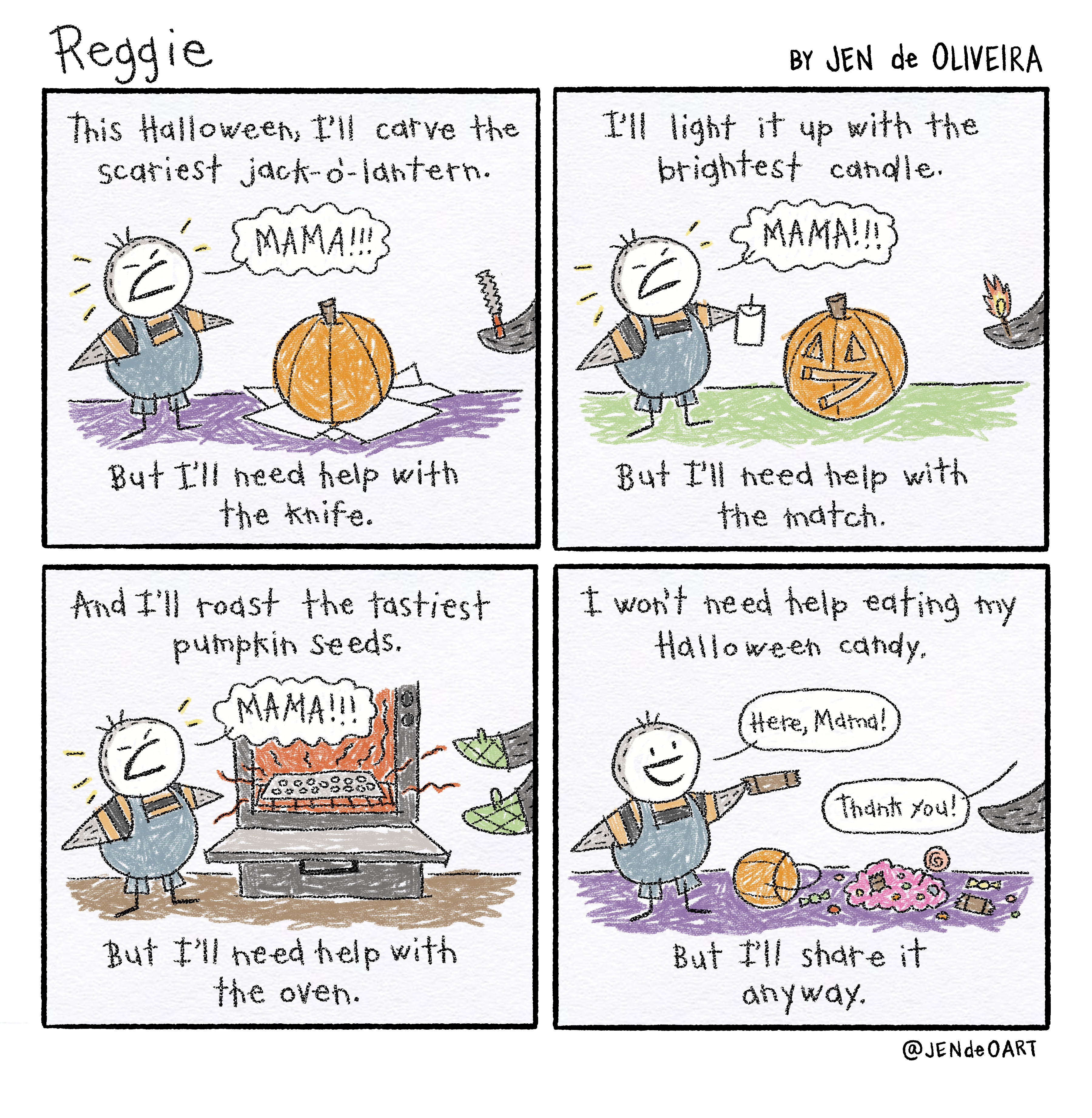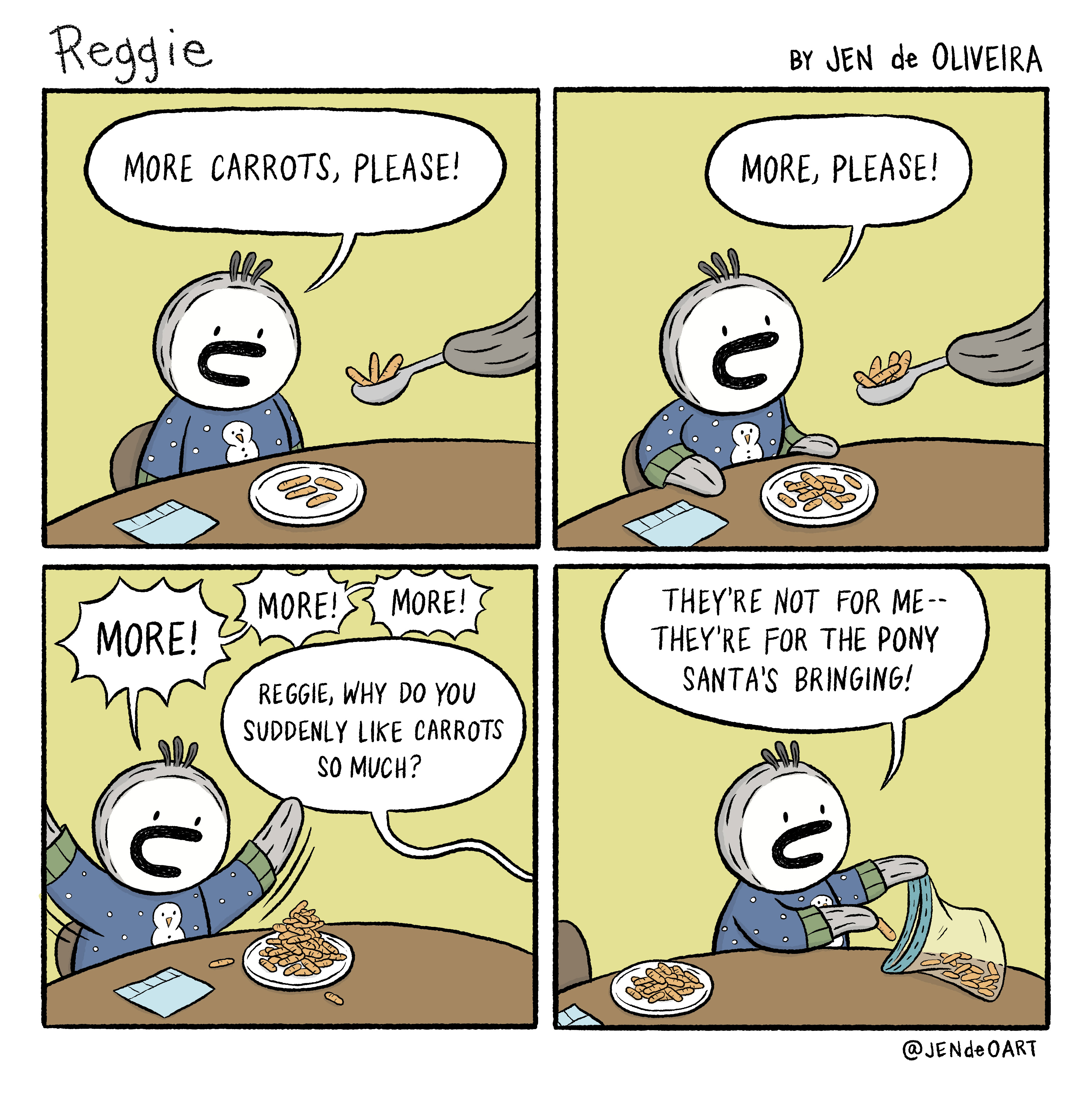 Cofounded in 2020 by Mika Song and Jen de Oliveira, Sunday Haha provided kids and families free comic strips made by a diverse group of kidlit creators. You can read the archive of weekly issues, some of which feature Reggie and other characters who went on to star in their own graphic novels.