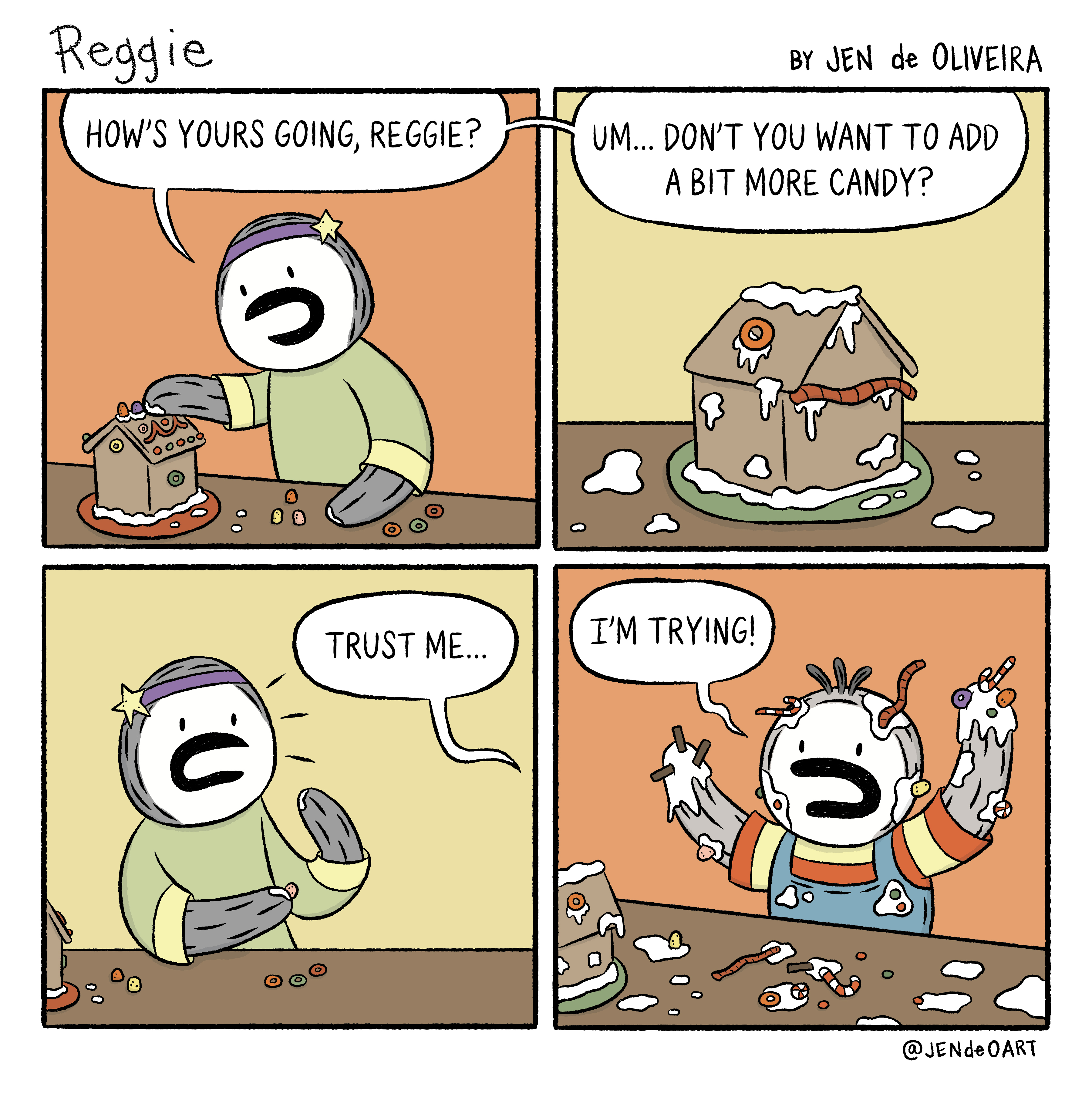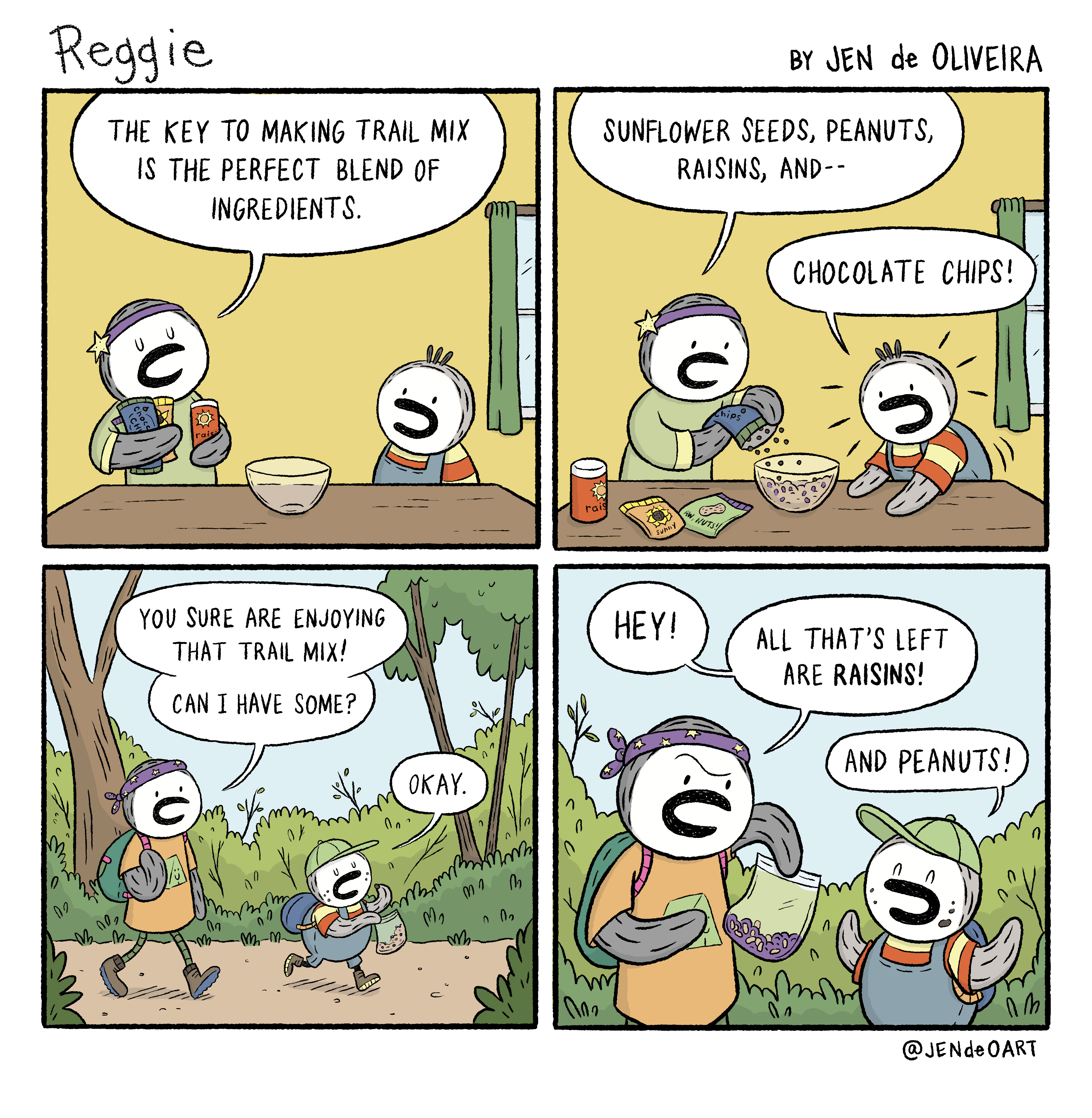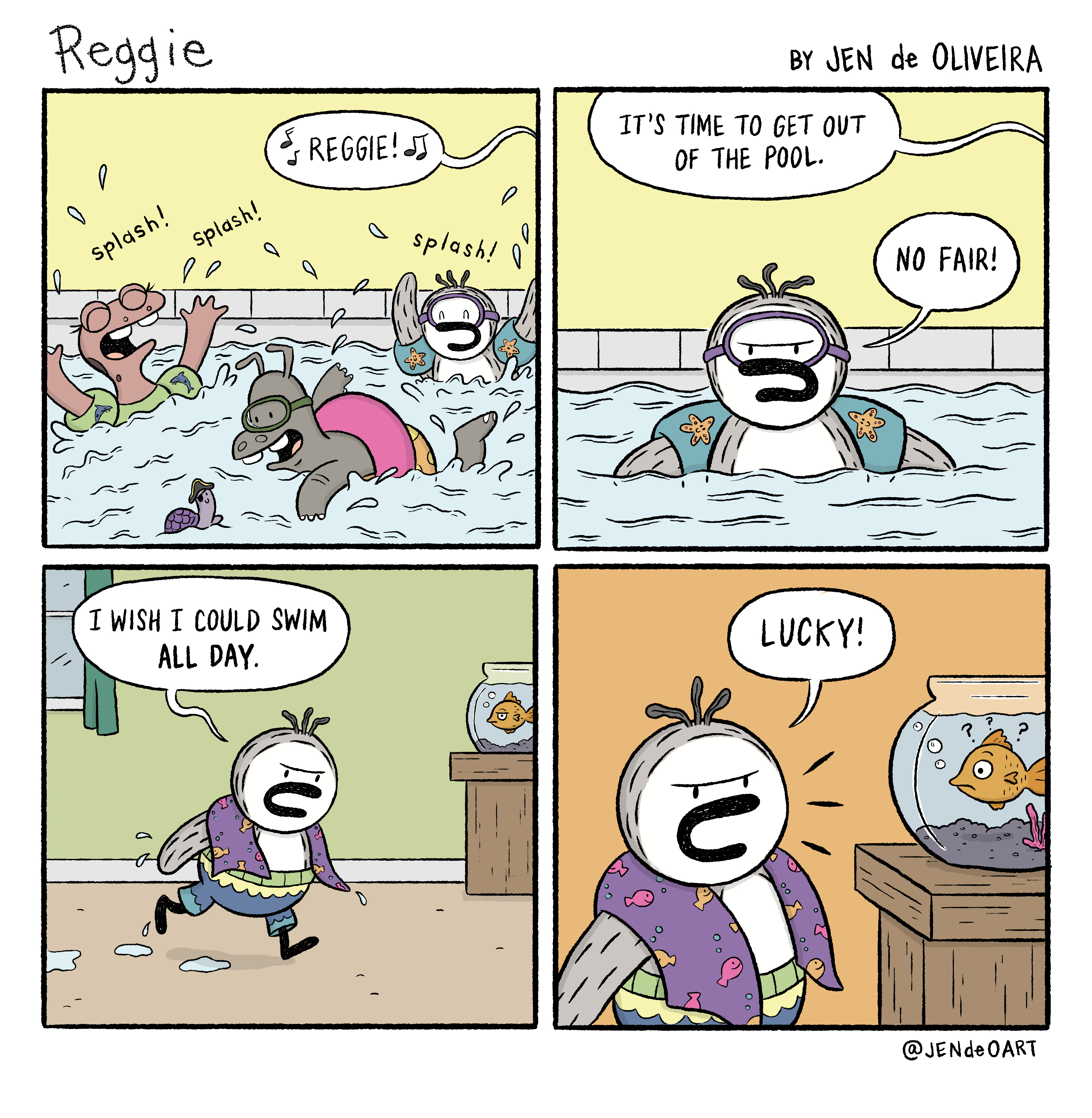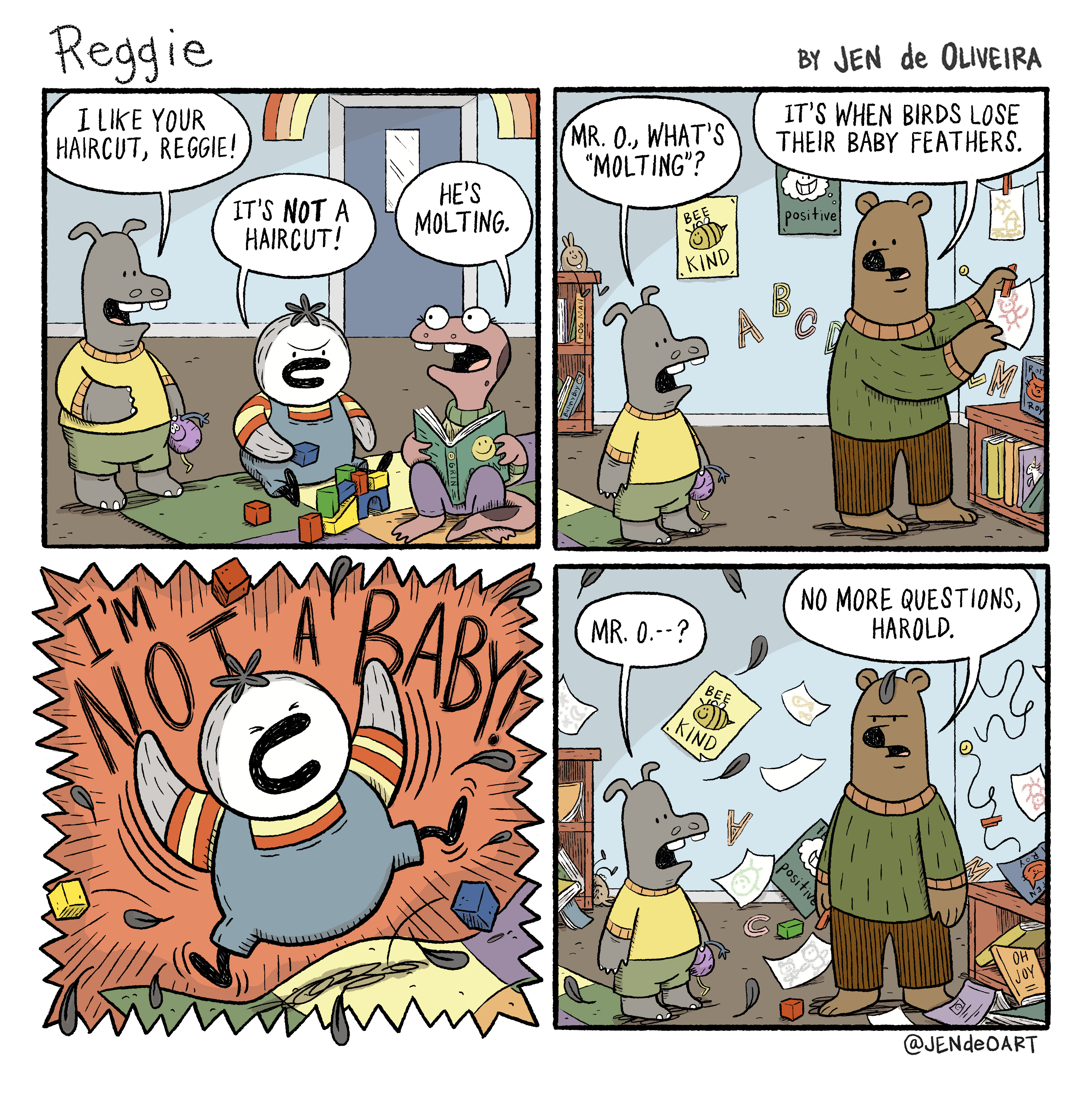 Cofounded in 2020 by Mika Song and Jen de Oliveira, Sunday Haha provided kids and families free comic strips made by a diverse group of kidlit creators. You can read the archive of weekly issues, some of which feature Reggie and other characters who went on to star in their own graphic novels.